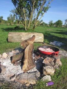 There are a few parameters that a campsite must fulfill for me to want to camp there. The most important to me is the ability to have a campfire. The fire is the focus of the camp. It provides warmth, light and a place to cook (even though the campervan has a hob we prefer to cook over the fire as often possible). Part of this blog will be our ongoing efforts to optimize over the fire cooking, recipes, equipment etc. CampingDad is especially keen on this stuff!