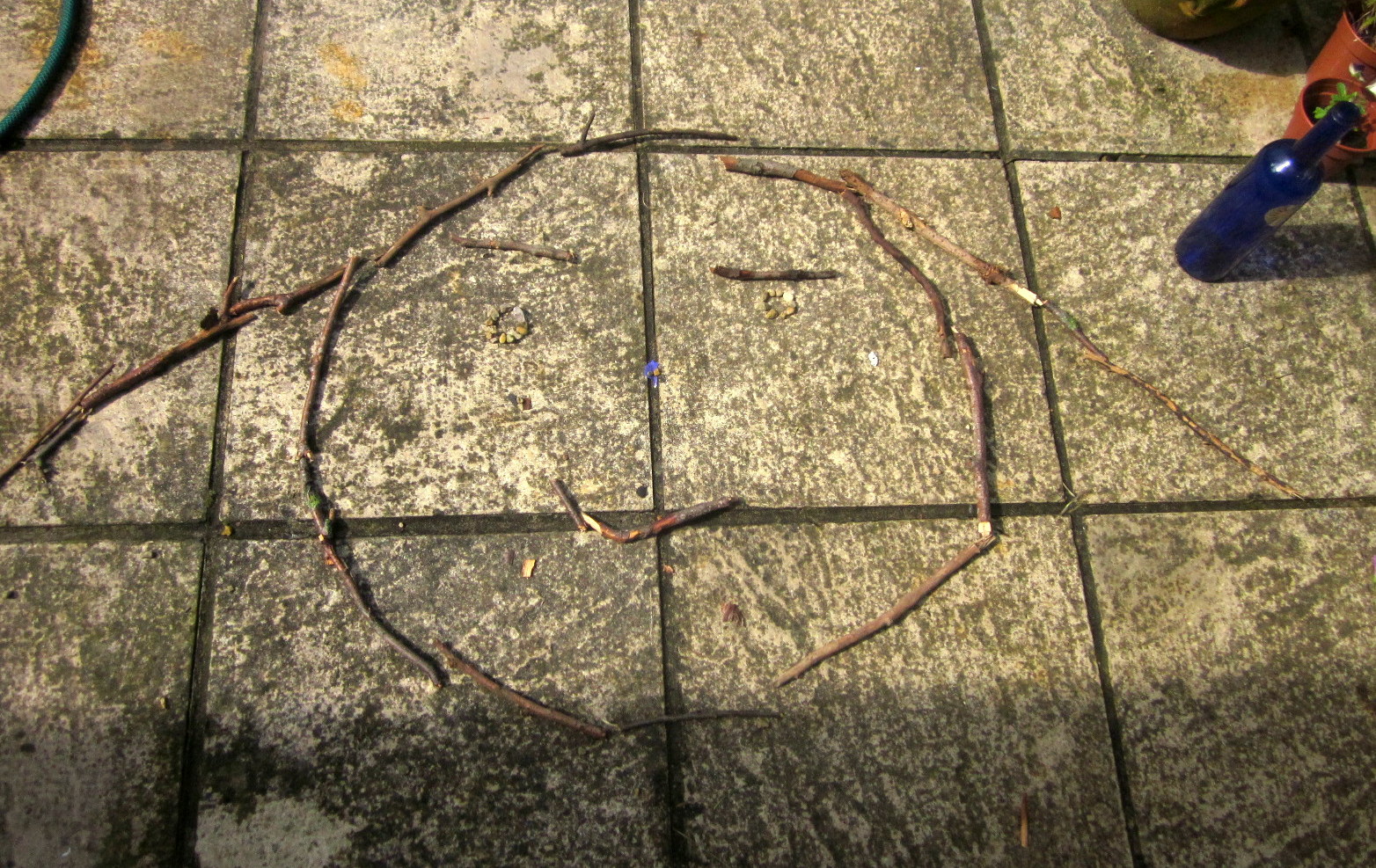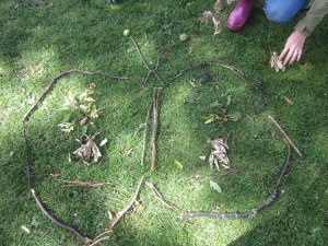 1. Look around and see what materials you could use.  It might be sticks, leaves, seaweed, stones, flowers (like daisies and dandelions).