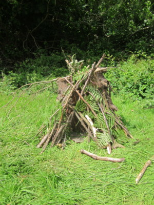 I used to make ‘wicker’ versions. A dozen willowy branches stuck vertically into the ground in a circle and then bent over and tied together at the top. Smaller branches woven around these horizontally.