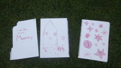 Next a stylus was required.  My daughter found a small stick and created a point using a large pencil sharpener. It worked.  We found some cartridge paper to write on, and they were drawing and writing happily for the next 20 mins.