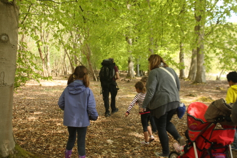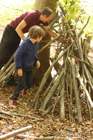 As we wandered through the wood, David, our ranger, found interesting things to tell us at almost every step.  He engaged the children well and stopped to answer all questions and examine all finds with enthusiasm and good humour.  We munched on newly emerged beech leaves, looked for signs of deer, examined rotten wood for mini beasts, learnt about different types of woodland, saw a slow-worm, attempted to make fire using a fire steel and built a den.  Frankly, I was in heaven (and so was my daughter!).