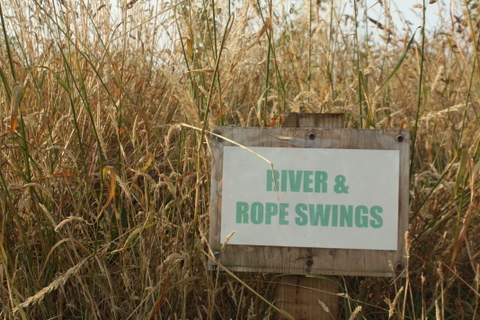 The big attraction for me was the promise of rope swings and a river. The weather has been scorching so some water to cool off was imperative. To reach the river we needed to pass along a path mown into the long grass, through a gate and over a meadow inhabited by a herd of sheep and a sweet donkey. Only a few minutes walk, but too far to send younger children off by themselves.